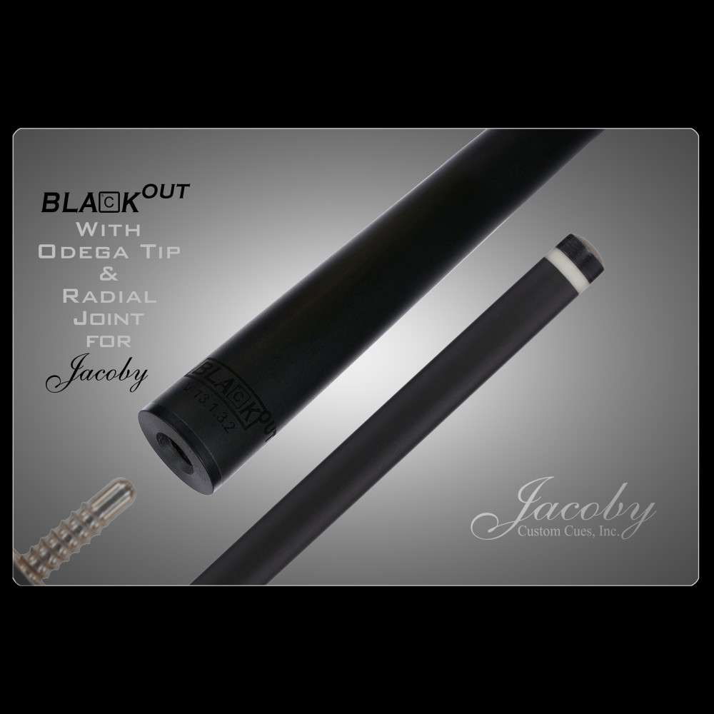 The Jacoby BlaCkOut Shaft is extremely comfortable, powerful, durable, and accurate. The shaft is constructed from unidirectional carbon, giving the shaft extra power, requiring less effort when moving the ball around the table. The carbon construction makes the shaft very impact and dent resistant. The 19” pro taper is extremely comfortable, allowing for a long smooth stroke. Our unique polishing technique creates one of the smoothest shafts on the market allowing it to glide through your fingers with ease and precision. The Jacoby BlaCkOut Shaft is only available in tip diameter 13.1mm (+0.2mm -0.1mm)